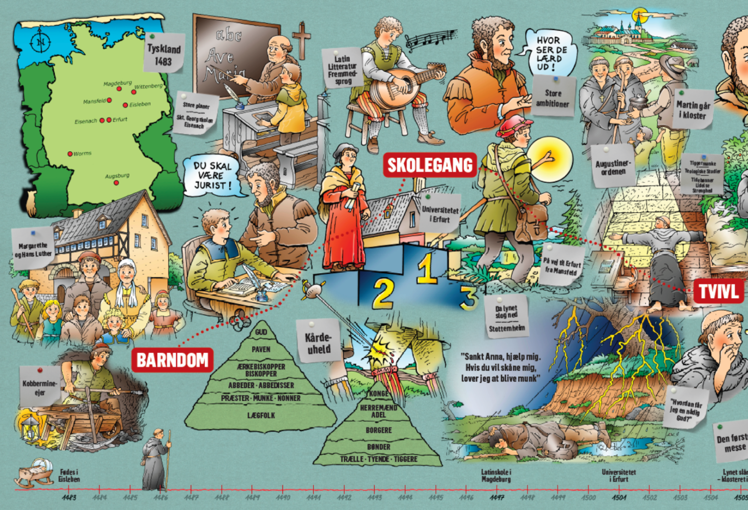5.-6. klasser, der arbejder med materialet ”Re:formation - teser, tro og tvivl” og 7.-10. klasser, der arbejder med "Løb gennem Danmarks kirkehistorie" har mulighed for her at dykke længere ned i fortællingen om Martin Luther til denne workshop.