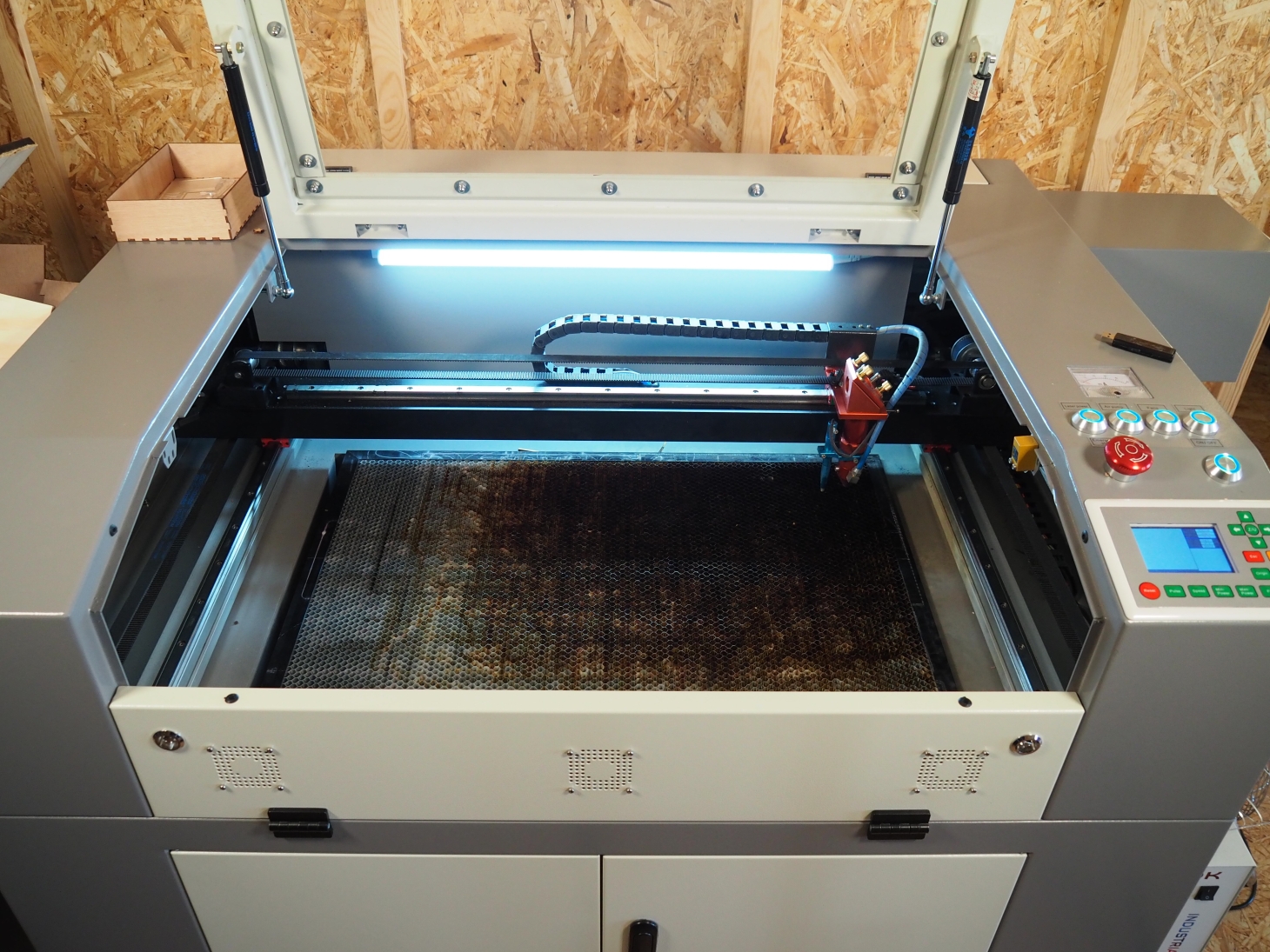 På laser cutteren, kan man skærer eller gravere i en lang række materialer.