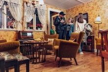 Vi begynder på Torvet, går en tur ned på Havnen, kigger ind hos købmanden og sniger os op ad trappen til de to lejligheder - alt sammen uden at forlade museet.