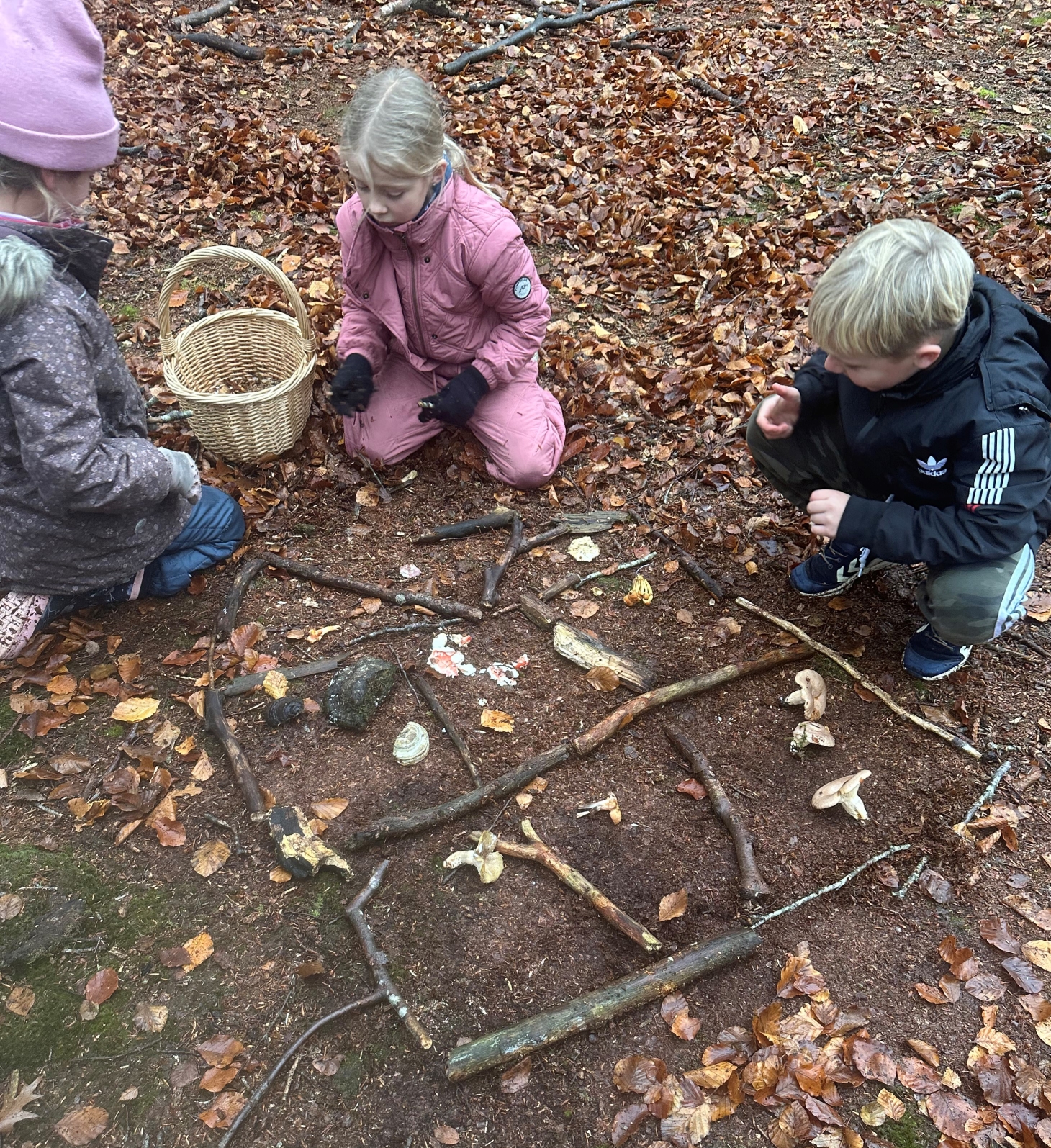 Eleverne finder forskellige svampe i skoven, og sammen bestemmer vi nogle af dem. Vi vil også lede efter hyfer i jorden, så eleverne forstår svampens eksistensgrundlag. Svampe kan ikke lave fotosyntese som planter, så de er afhængige af at leve i symbiose med træer eller ved at nedbryde grene og andet i skovbunden. Vi sætter således fokus på svampens funktion som snylter. Eleverne undersøger hermed svampens livsbetingelser; svampe er hverken planter eller dyr, men derimod deres helt egen gruppe.