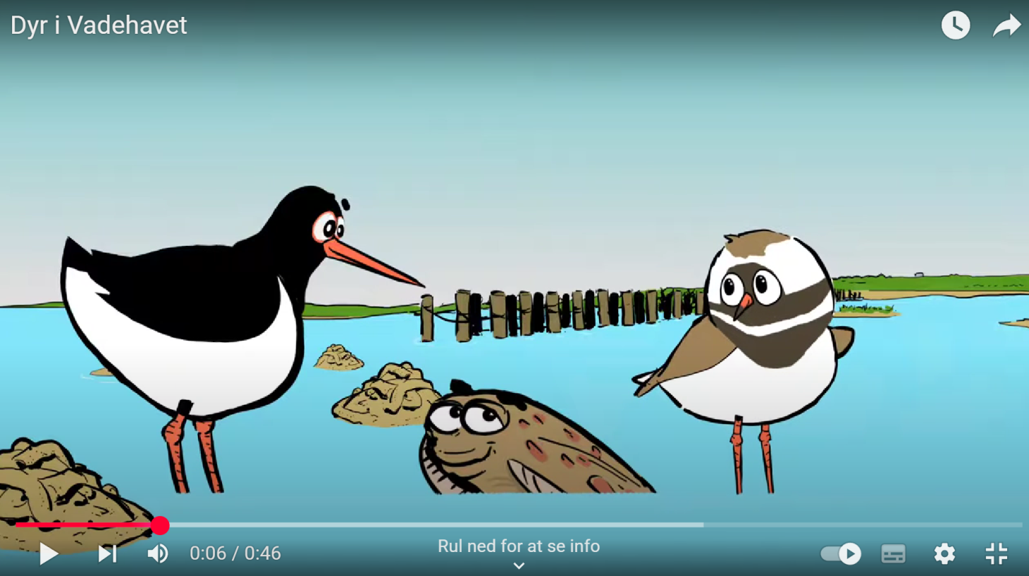 Se en kortfilm om livet i Vadehavet, hvor Strandskaden Skalle og præstekraven Pelle møder andre dyr.