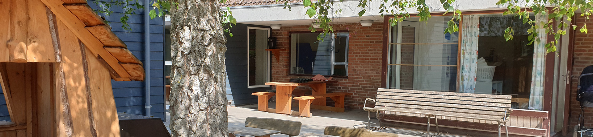 Vi har en dejlig legeplads og benytter byens mange muligheder for udeliv.
