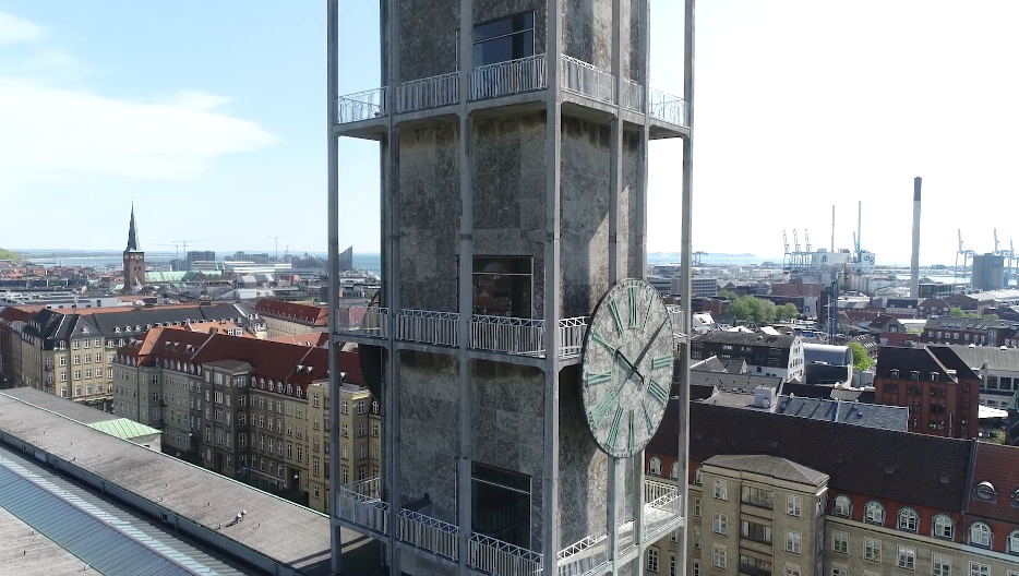 Selvfølgelig stiger vi også til vejrs i det 60 meter høje rådhustårn, hvor vi kommer helt tæt på rådhusets store klokkespil, kan beundre den flotte panoramaudsigt over byen og spotte alle de mange interessante bygninger og attraktioner, som Aarhus har at byde på.
